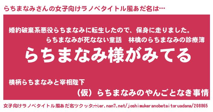 | 男性向けラノベタイトル風あだ名 | 『らちまなみの嫁は女の子じゃないと思った?』 |