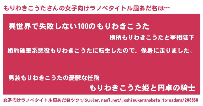 | 男性向けラノベタイトル風あだ名 | 『モリワキコウタスレイヤー』 |