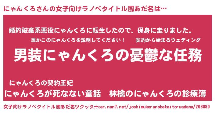 | 胡散臭い通販商品みたいなあだ名 | 『あなたにだけ特別に提供する100年もののヴィンテージワイン…その名も「にゃんくろ」』 |