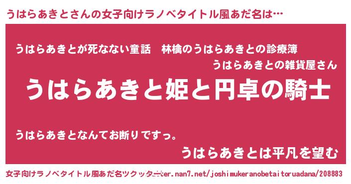| 男性向けラノベタイトル風あだ名 | 『うはらあきとの憂鬱』 |