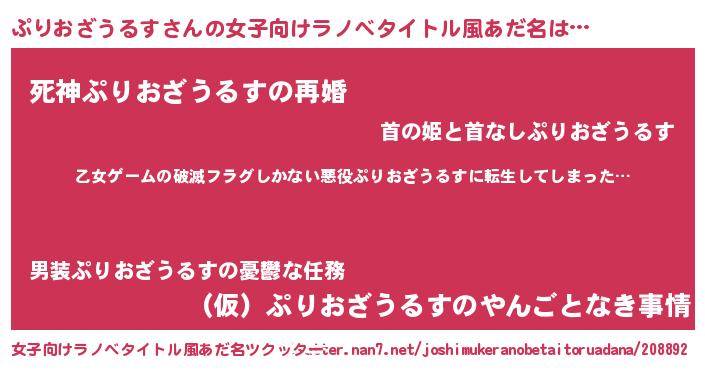 | 男性向けラノベタイトル風あだ名 | 『この素晴らしい世界にぷりおざうるすを!』 |