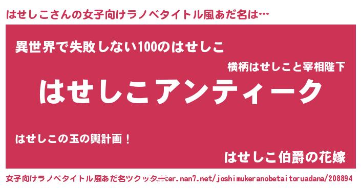 | 胡散臭い通販商品みたいなあだ名 | 『テレビで話題のアガリクス…その名も「はせしこ」』 |