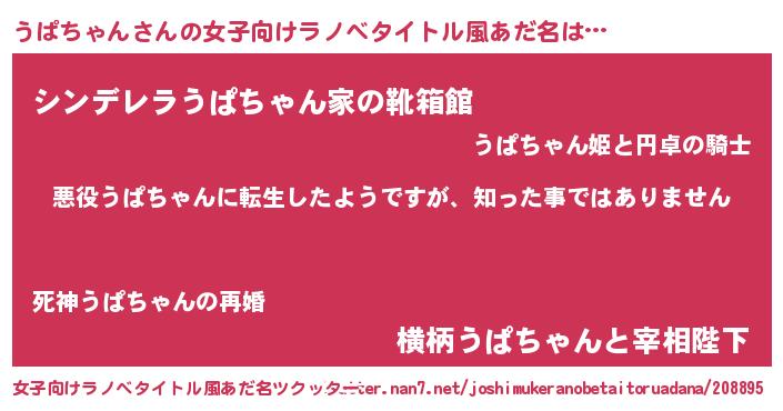 | ヒーロー風カッコイイあだ名 | 『仮面ウパダー』『スーパーウパチャン』 |