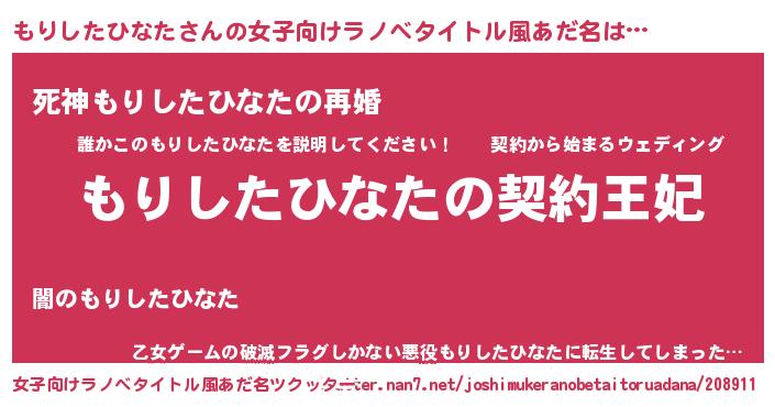 | 男性向けラノベタイトル風あだ名 | 『もりしたひなたという概念が存在しない退屈な世界 』 |