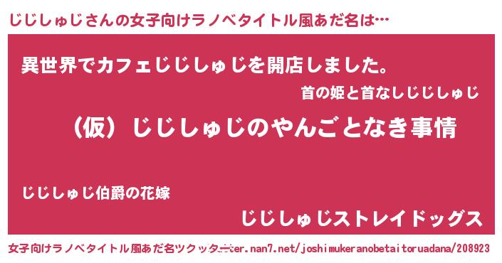 | 男性向けラノベタイトル風あだ名 | 『じじしゅじの憂鬱』 |