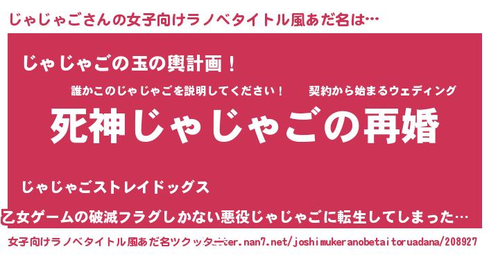 | 男性向けラノベタイトル風あだ名 | 『ノーゲーム・ノージャジャゴ』 |