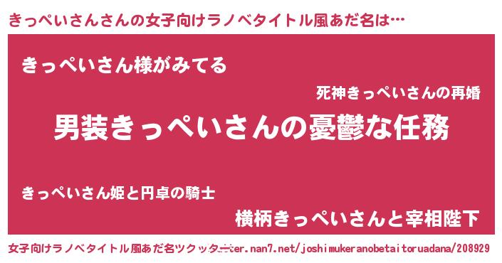 | 男性向けラノベタイトル風あだ名 | 『うちのきっぺいさんが世界を掌握している!』 |