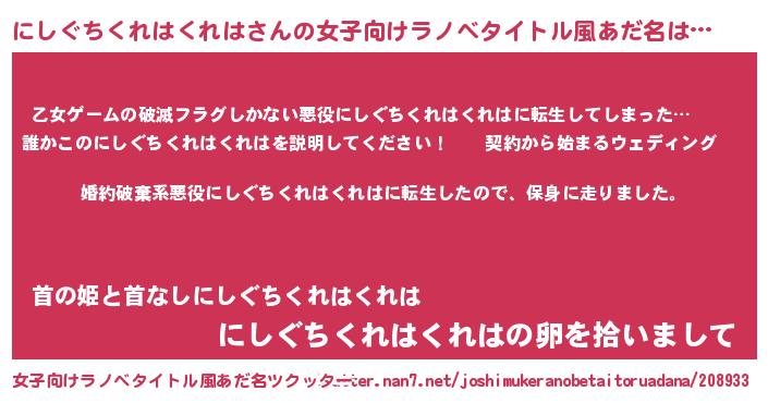 | 胡散臭い通販商品みたいなあだ名 | 『ハリウッド女優が絶賛した100年もののヴィンテージワイン…その名も「にしぐちくれはくれは」』 |