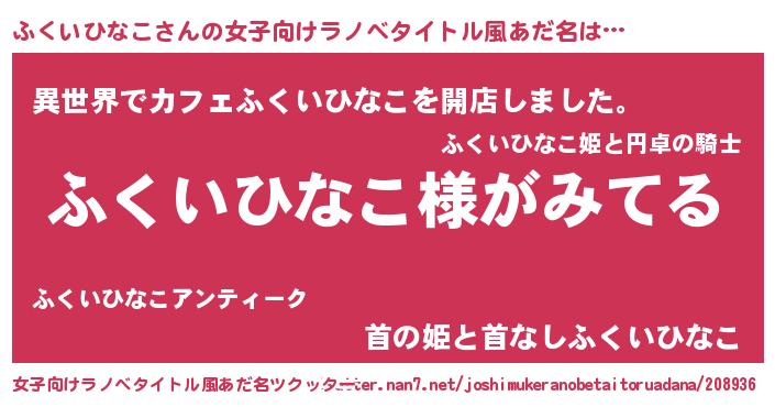 | 男性向けラノベタイトル風あだ名 | 『ふくいひなこの嫁は女の子じゃないと思った?』 |