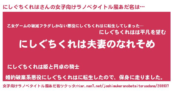 | 胡散臭い通販商品みたいなあだ名 | 『100人中100人が認めたマグネット磁石…その名も「にしぐちくれは」』 |