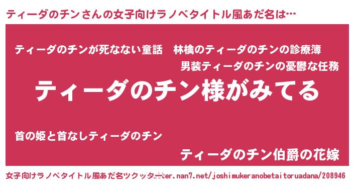 | 男性向けラノベタイトル風あだ名 | 『ティーダのチンの嫁は女の子じゃないと思った?』 |