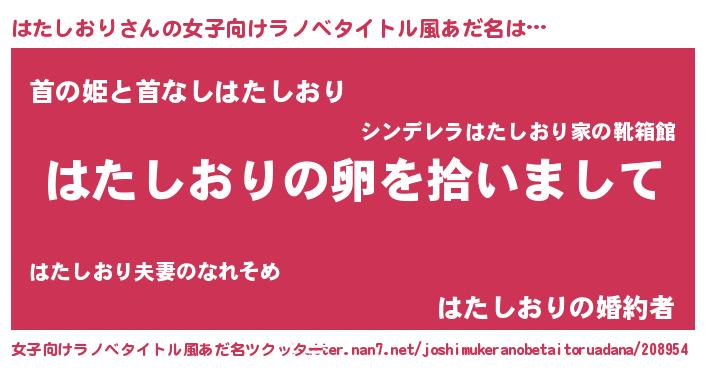 | 胡散臭い通販商品みたいなあだ名 | 『伝統あるサプリメント…その名も「はたしおり」』 |