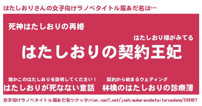 | 男性向けラノベタイトル風あだ名 | 『はたしおりという概念が存在しない退屈な世界 』 |