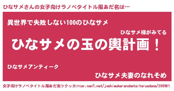 | ヒーロー風カッコイイあだ名 | 『ネオヒナサメ』『正義の使者ひなサメ』 |