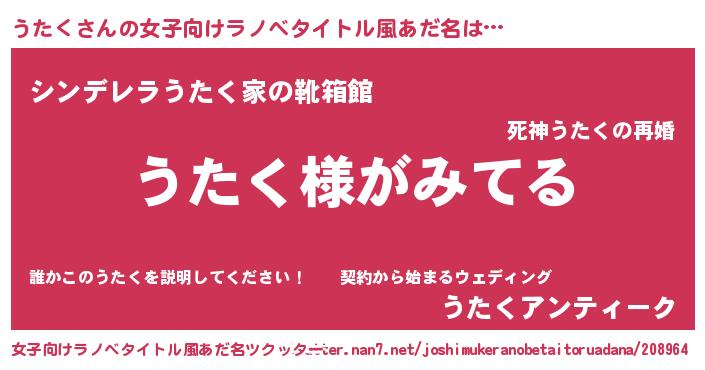 | 男性向けラノベタイトル風あだ名 | 『うたくの嫁は女の子じゃないと思った?』 |