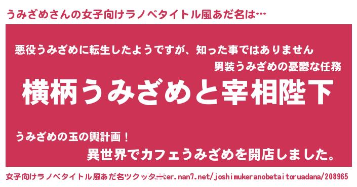 | 意味不明あだ名 | 『住所不定無職うみざめ(85歳)』 |