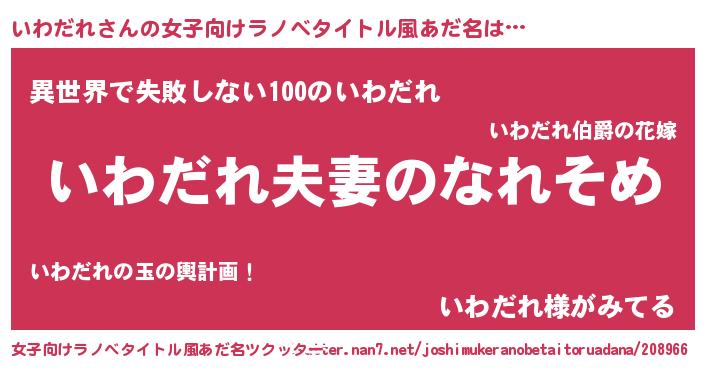 | ファンタジー風あだ名 | 『クインイット』『イワディッシュ』 |