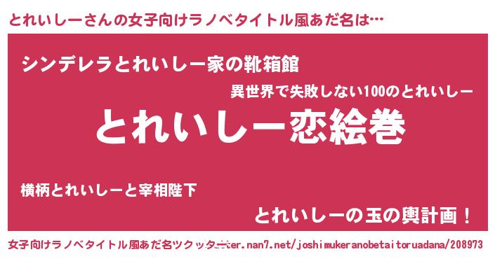 | ヘコむあだ名 | 『とれいしー(苦笑)』『とれぷりん』 |