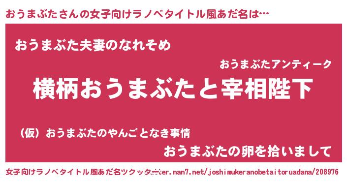 | 男性向けラノベタイトル風あだ名 | 『おうまぶたに滅ぼされるだけの簡単なお仕事です』 |