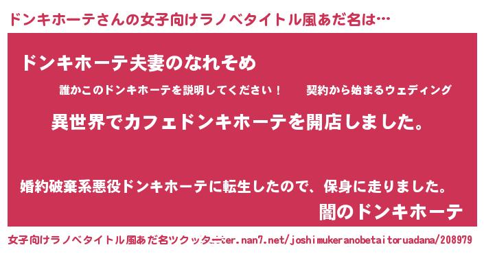 | 男性向けラノベタイトル風あだ名 | 『誰もが恐れるあのドンキホーテが、ぼくの専属メイドになるようです。』 |