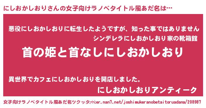 | 男性向けラノベタイトル風あだ名 | 『はたらくにしおかしおりさま!』 |
