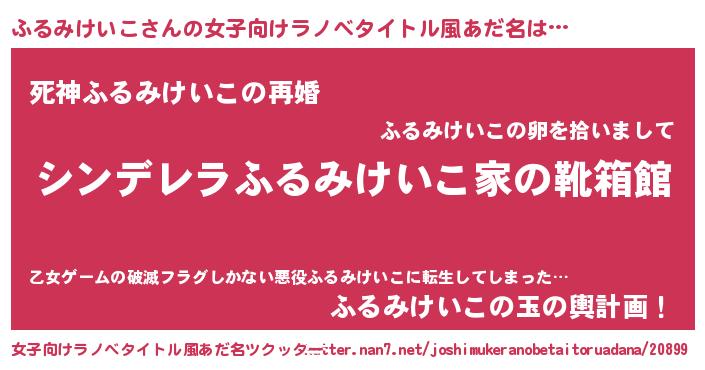 | 男性向けラノベタイトル風あだ名 | 『緋弾のフルミケイコ』 |