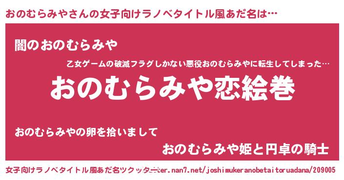 | 男性向けラノベタイトル風あだ名 | 『ノーゲーム・ノーオノムラミヤ』 |