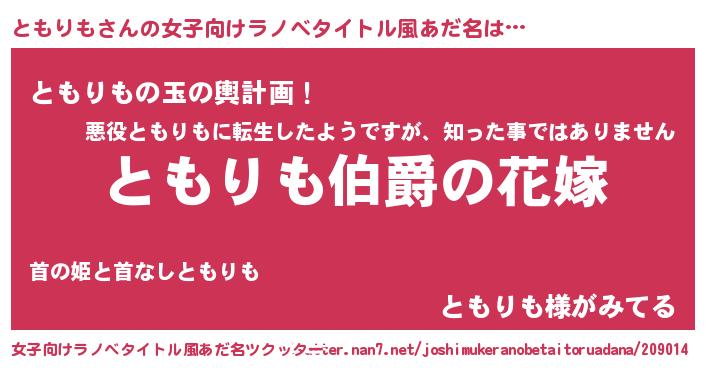| 意味不明あだ名 | 『ともりもフォーエバー』 |