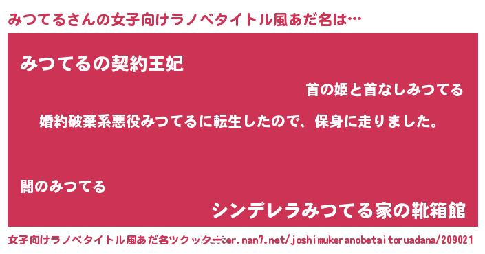 | 胡散臭い通販商品みたいなあだ名 | 『来世でも幸せになれる水素水…その名も「みつてる」』 |