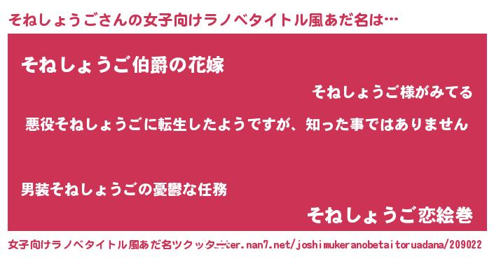 | 意味不明あだ名 | 『住所不定無職そねしょうご(89歳)』 |