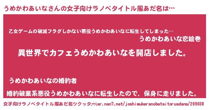 | 男性向けラノベタイトル風あだ名 | 『誰もが恐れるあのうめかわあいなが、ぼくの専属メイドになるようです。』 |