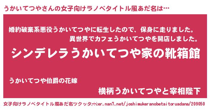 | 胡散臭い通販商品みたいなあだ名 | 『絶対に幸福をもたらす水素水…その名も「うかいてつや」』 |