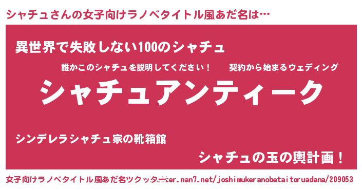 | ヘコむあだ名 | 『シャチュ(苦笑)』『シャにゅー』 |