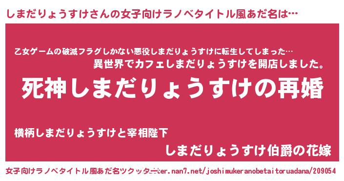 | 伝説のあだ名 | 『救世主となる占い師しまだりょうすけ』 |