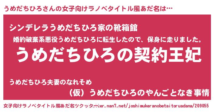 | 胡散臭い通販商品みたいなあだ名 | 『来世でも幸せになれる健康食品…その名も「うめだちひろ」』 |