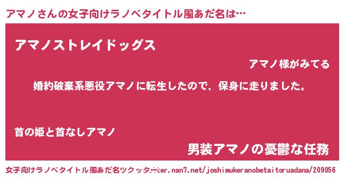 | 男性向けラノベタイトル風あだ名 | 『転生したらアマノだった件』 |