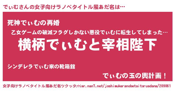 | 男性向けラノベタイトル風あだ名 | 『でぃむに滅ぼされるだけの簡単なお仕事です』 |