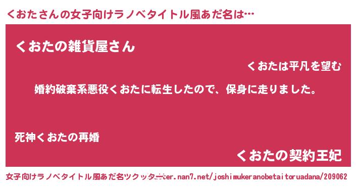 | 男性向けラノベタイトル風あだ名 | 『クオタスレイヤー』 |