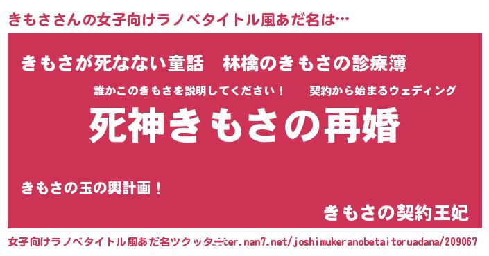 | 男性向けラノベタイトル風あだ名 | 『ノーゲーム・ノーキモサ』 |