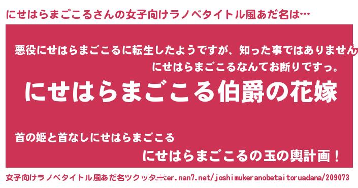 | 意味不明あだ名 | 『にせはらまごこるフォーエバー』 |