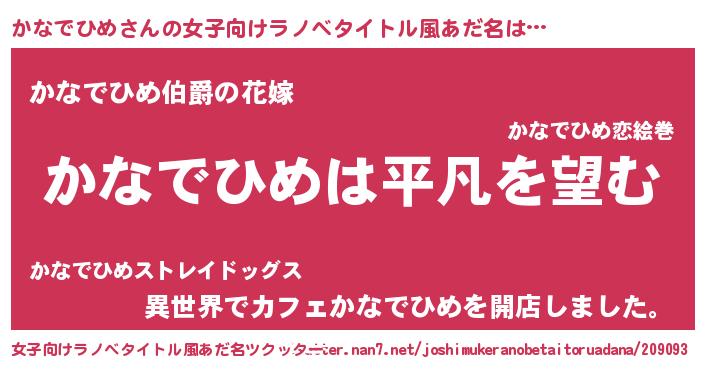 | 胡散臭い通販商品みたいなあだ名 | 『信頼と実績のサプリメント…その名も「かなでひめ」』 |