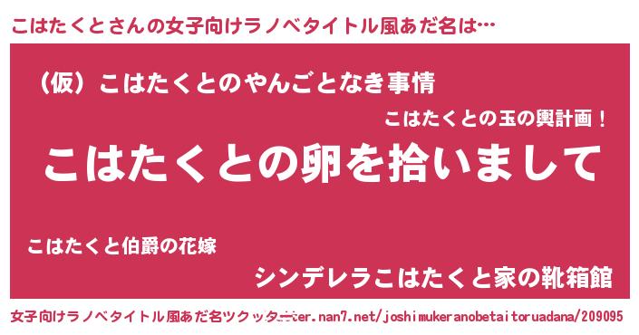 | 男性向けラノベタイトル風あだ名 | 『ダンジョンにこはたくとを求めるのは間違っているだろうか』 |