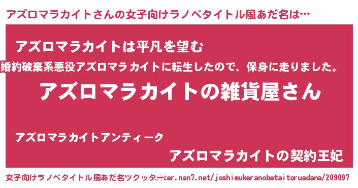 | 男性向けラノベタイトル風あだ名 | 『やはりアズロマラカイトの青春ラブコメはまちがっている 』 |