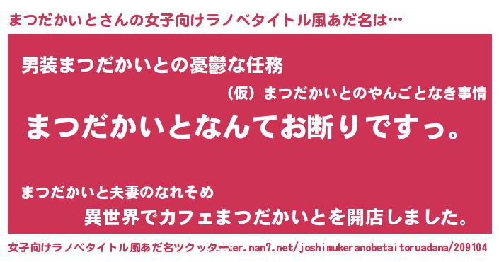| 意味不明あだ名 | 『自称まつだかいと』 |