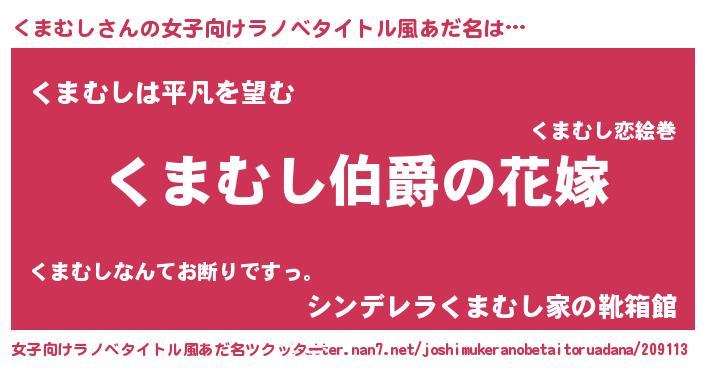 | 男性向けラノベタイトル風あだ名 | 『やはりくまむしの青春ラブコメはまちがっている 』 |