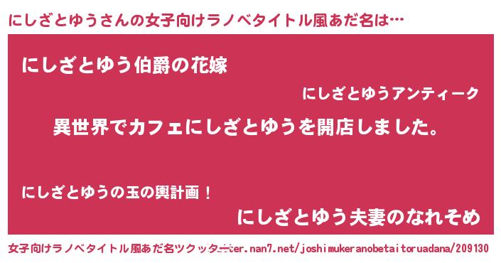 | 意味不明あだ名 | 『永久保存にしざとゆう』 |