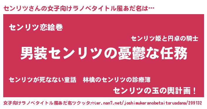 | 男性向けラノベタイトル風あだ名 | 『冴えないセンリツの育てかた』 |