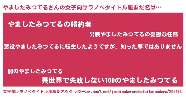 | 男性向けラノベタイトル風あだ名 | 『この素晴らしい世界にやましたみつてるを!』 |