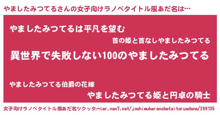 | 胡散臭い通販商品みたいなあだ名 | 『絶対に幸福をもたらす健康食品…その名も「やましたみつてる」』 |