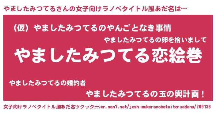 | 男性向けラノベタイトル風あだ名 | 『ノーゲーム・ノーヤマシタミツテル』 |